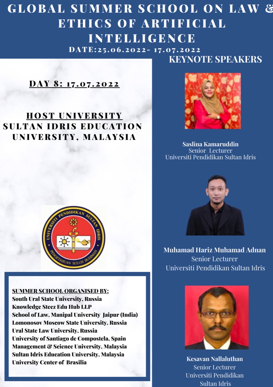 Keynote Speaker – The Online Global Summer School On Law & Ethics Of Artificial Intelligence on17.07.2022.
