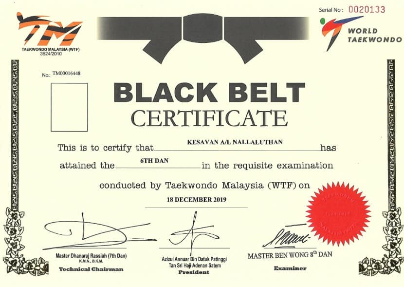 - Jemputan sebagai pengadil untuk Perwira Taekwondo Championship 2022 – 4 December 2022